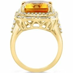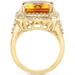 Luxurious golden citrine is wrapped in round and baguette diamonds in this stunning Limited Edition ring from EFFY®.