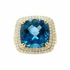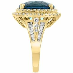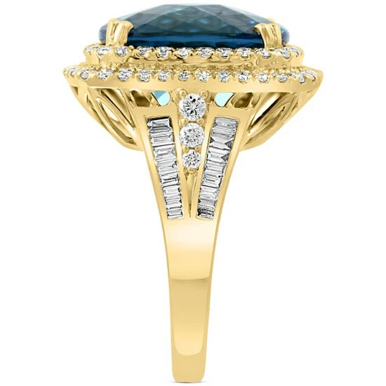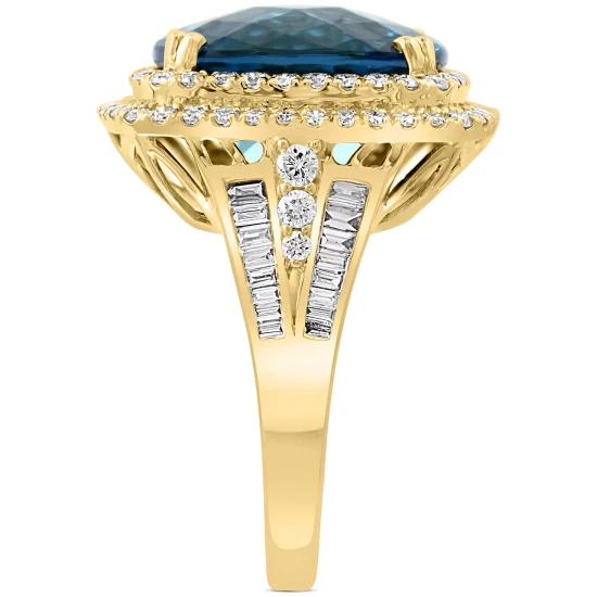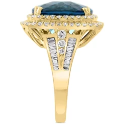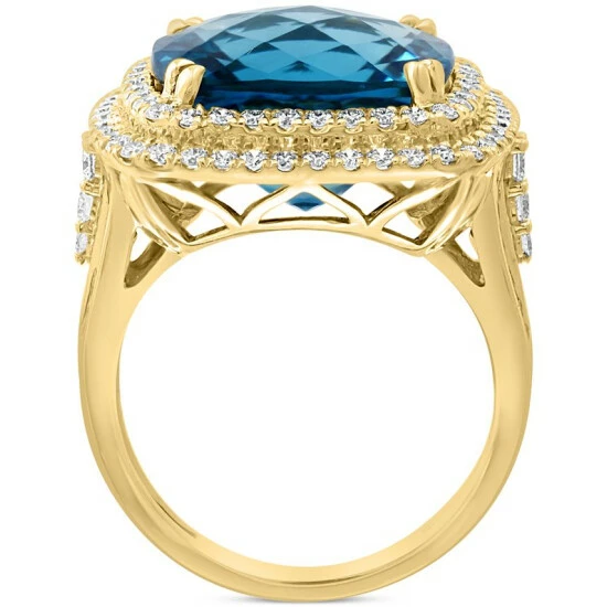 From EFFY®, this dazzling London blue topaz ring, set with a shimmering double halo of round-cut diamonds.