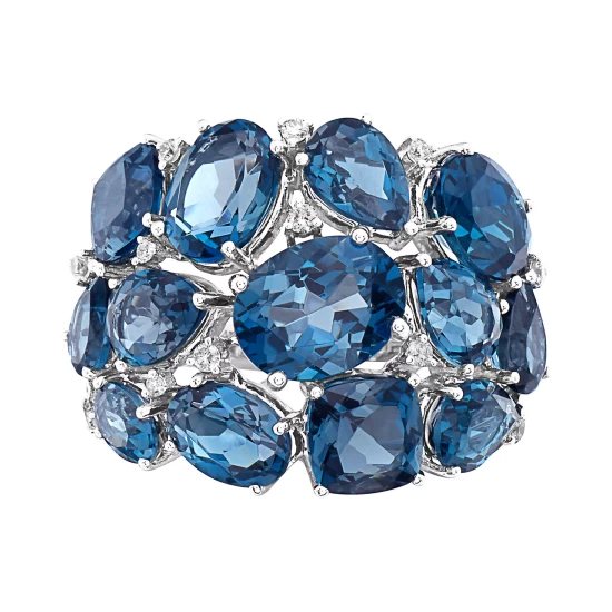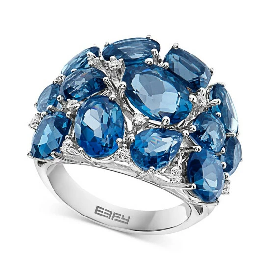 Take your look to the next level of elegance with this dramatic EFFY® ring, set with a beautiful multi-shaped London blue topaz cluster, interspersed with sparkling diamonds.