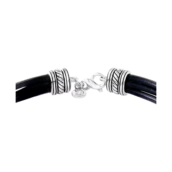 EFFY® ups the attitude factor with this men’s leather statement bracelet featuring multiple leather cords grasped by textured silver rondelles.