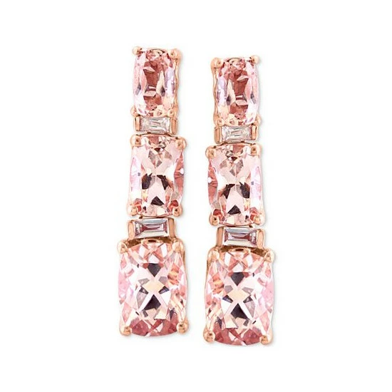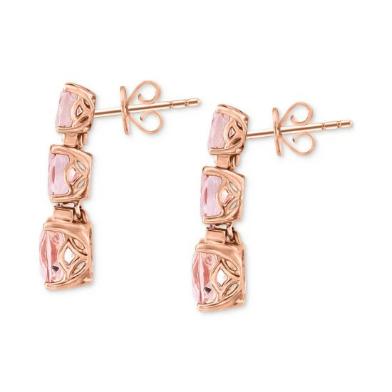 The delicate pink sparkle of morganite is echoed in the rose gold settings of these EFFY® graduated drop earrings with diamond accents.