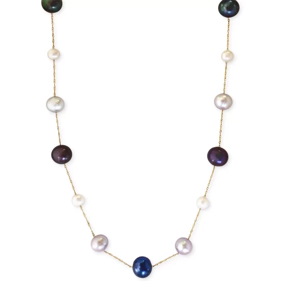 Create the look of natural beauty with this gorgeous necklace, featuring cultured freshwater pearl (6-9-1/2mm) stations in white, black and grey hues. Crafted in 14k gold. Approximate length: 18 inches.