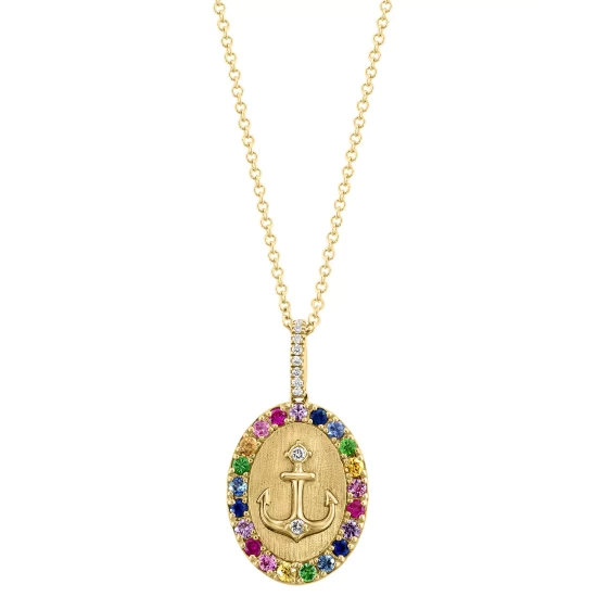 Go nautical with this anchor pendant necklace from EFFY®, set with multi-sapphires, tsavorite and diamonds.