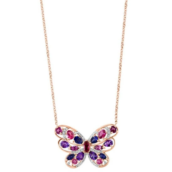 A pink and purple-hued butterfly is paired with glittery diamonds accents to create this whimsical butterfly pendant necklace from EFFY®.
