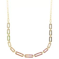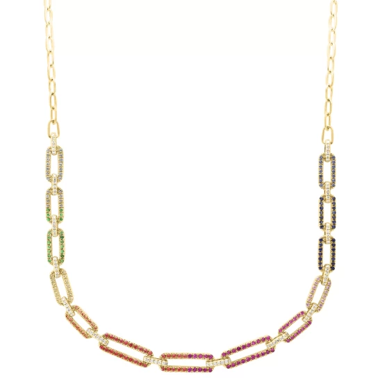 Large gorgeous links of ombré multicolor sapphire and tsavorite gemstones are accented with diamonds in this stunning statement necklace from EFFY®.