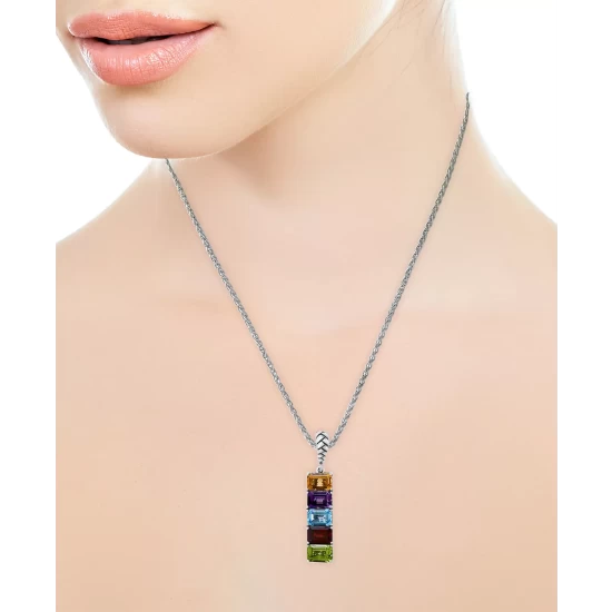 Bold and colorful emerald-cut gemstones are horizontally aligned in this expressive silver pendant necklace from EFFY®.