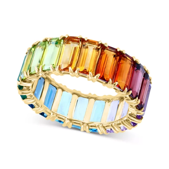 An ombré rainbow of multi-gemstone baguettes creates this unique and stunning ring from EFFY®