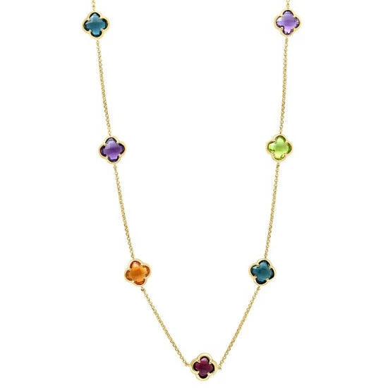 Jeweled-tone whimsy. This EFFY® clover motif statement necklace glows with fancy-cut amethyst, London blue topaz, Madeira citrine,