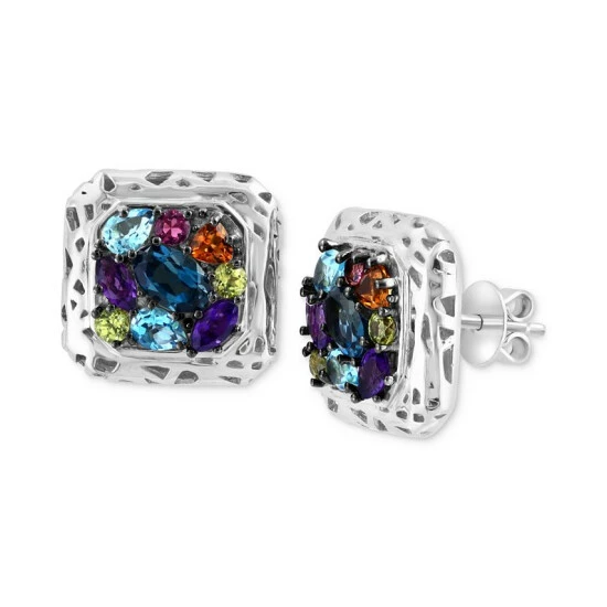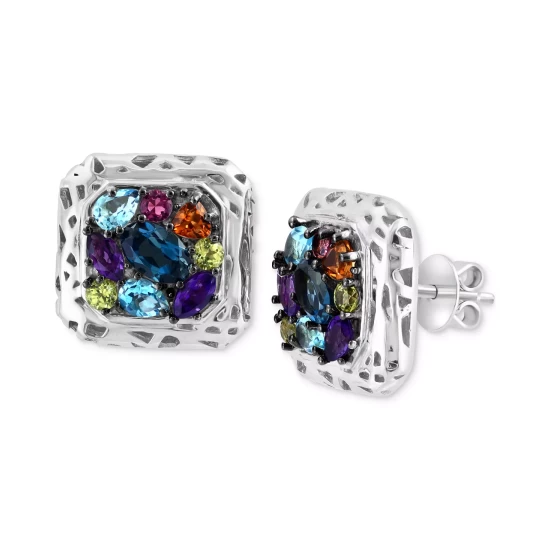 A shimmering array of multicolor gemstones are skillfully set to showcase both color and sparkle in these gorgeous stud earrings from EFFY®.