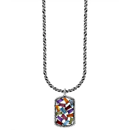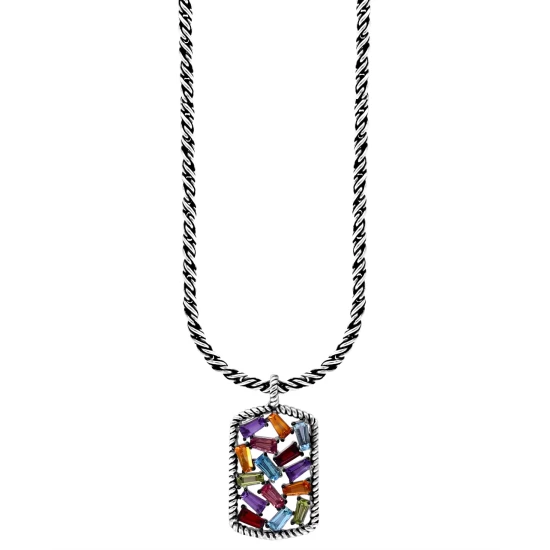 A dazzling scattered cluster of emerald-cut gemstones brings bright color and sophisticated styling to this EFFY® pendant necklace. Gemstones included amethyst, blue topaz, citrine, garnet, pink tourmaline, and peridot.