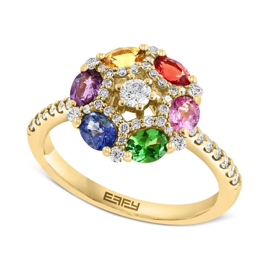 A colorful cluster of mult-sapphires is interspersed with diamonds on this uniquely elegant ring from EFFY®.