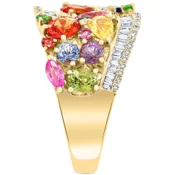 A stunning array of multicolor sapphires is accented with round and baguette diamonds on this dramatically-chic statement ring from EFFY®.