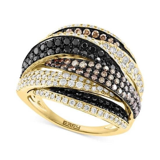 Dazzling rows of black, white, and espresso diamonds overlap on this stunning crossover statement ring from EFFY®.