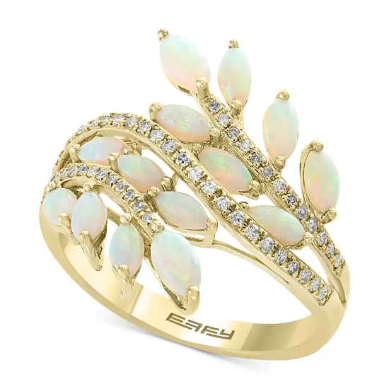 Magnificent leaves of marquise-shape opals absorb the fiery beauty of round-shape diamond vines in this artistically designed ring from EFFY.