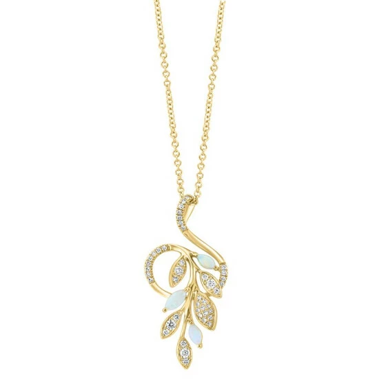 A modern floral design from EFFY®, this pendant necklace features brilliant diamonds and glowing opals.