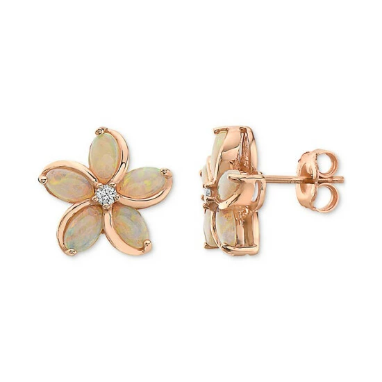 Beautiful marquise-cut opals form pretty petals on these diamond accented flower stud earrings from EFFY®.