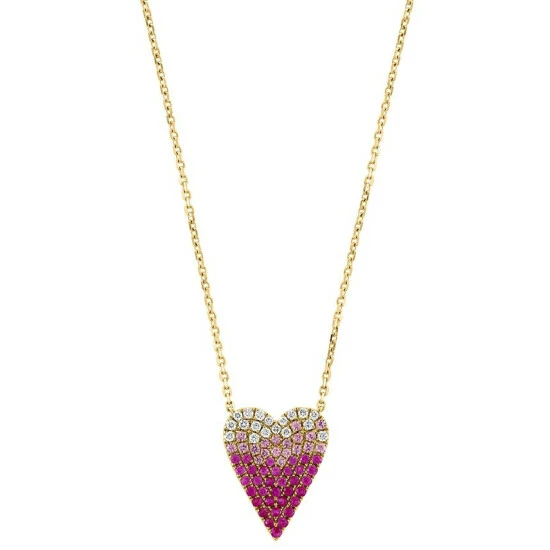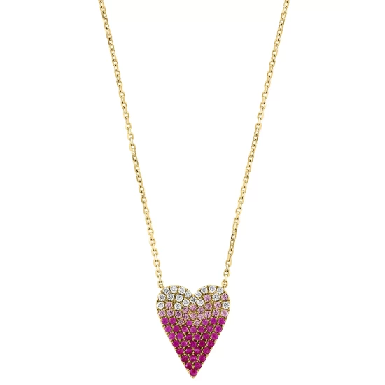 Light and dark pink sapphires are set with diamonds to create the stunning ombré effect of this pavé heart pendant necklace from EFFY®.