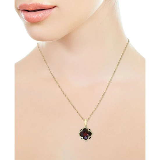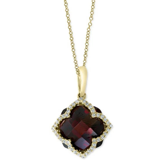 An outline of clover-inspired diamond sparkle is overlaid atop a beautiful rhodolite garnet in these exceptional pendant necklace from EFFY®