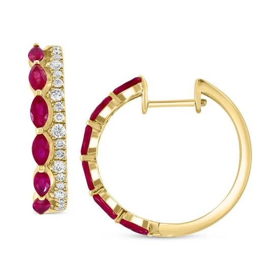 Elegant marquise-cut rubies are set with sparkling rows of diamonds in these beautiful hoop earrings from EFFY®.