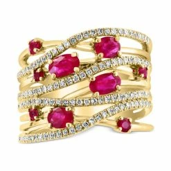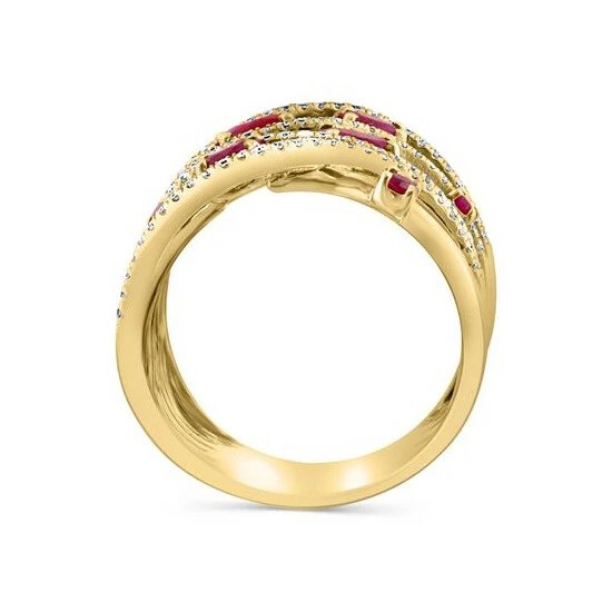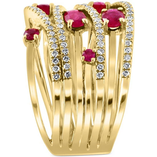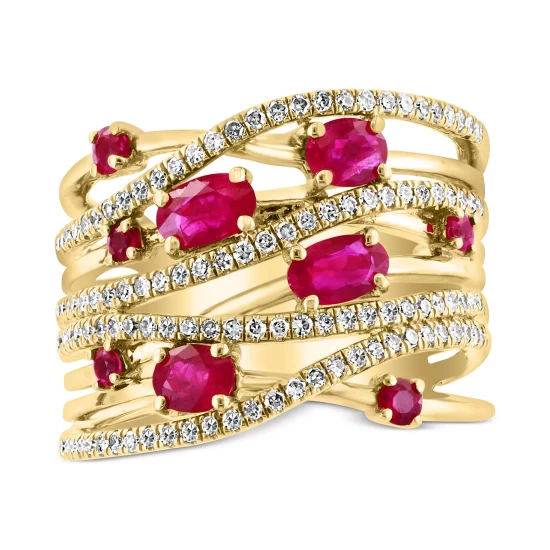 Give your look that glamorous glow with this stunning multirow diamond statement ring, designed by EFFY® with breathtaking oval- and round-cut rubies.