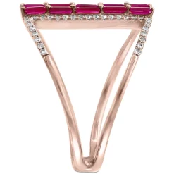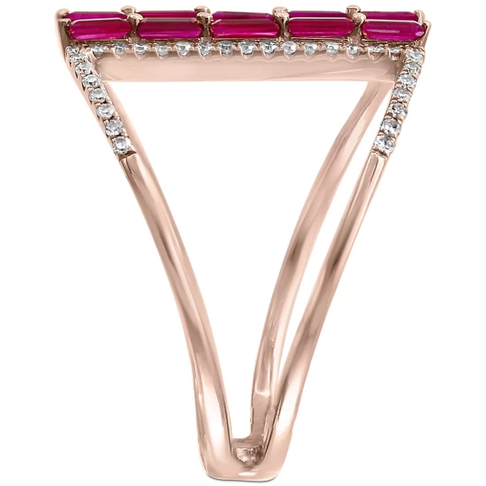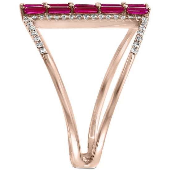 Be dazzled by the deco-inspired artistry of this EFFY ring featuring stunning baguette rubies, framed by round-shape diamonds set in a stunning openwork design.