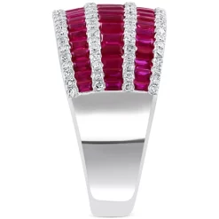 EFFY® gives into the drama with this ultra-elegant multirow statement ring, set with ruby baguettes and sparkling round diamonds.