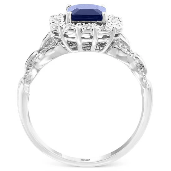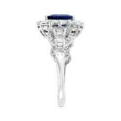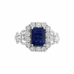 Stun when you choose this elegant statement ring from EFFY that features a bold sapphire surrounded by round and baguette diamonds.