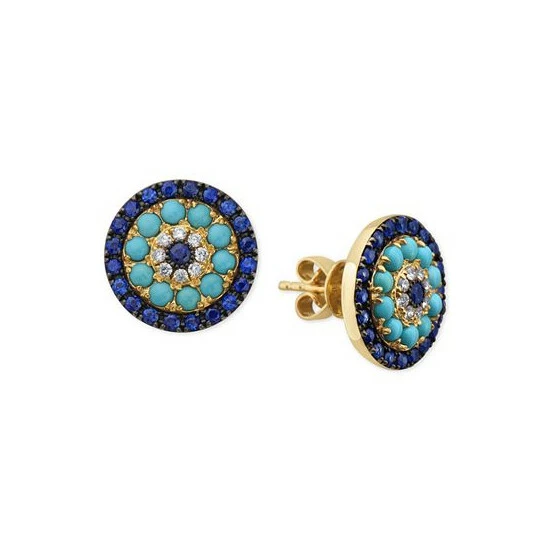 Elevate your look with the artistry and intrigue of EFFY®’s gorgeous stud earrings set with stunning sapphires and diamonds and brightly colored turquoise.