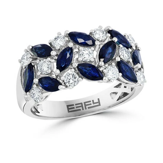 Refined and graceful, this stunning cluster ring from EFFY® glistens with marquise-cut sapphires and round-cut diamonds.