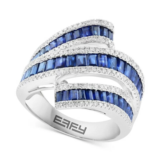Be irresistibly elegant in this stunning sapphire baguette and diamond swirl statement ring from EFFY®.