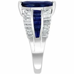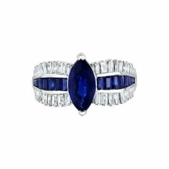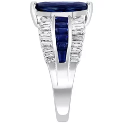Be exceptional in this boldly designed EFFY® ring, featuring a center marquise natural sapphire, with dazzling diamond and sapphire baguettes set in a dramatic design, along the polished white gold shank.