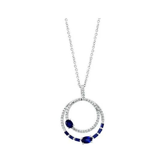 Oval and baguette natural sapphires are paired with beautiful diamonds in this elegant and artistic double circle pendant necklace from EFFY®.