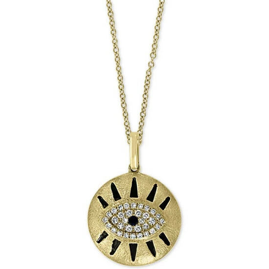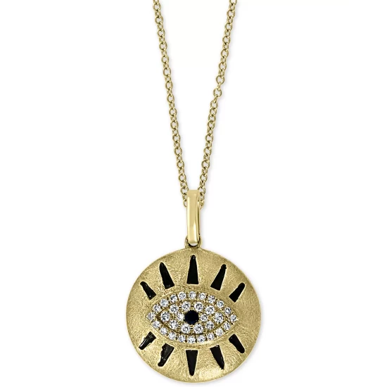 Sleek, chic and all-seeing, EFFY® keeps your style protected with this dazzling sapphire & diamond evil eye disc pendant necklace.