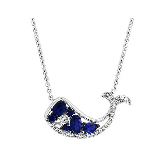 EFFY® achieves ocean-inspired elegance with this natural blue sapphire and diamond whale pendant necklace.