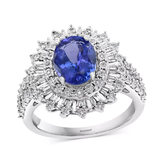 Immerse her in enchantment with this stunning tanzanite ring, set in a dazzling halo of round and baguette diamonds – from EFFY®.