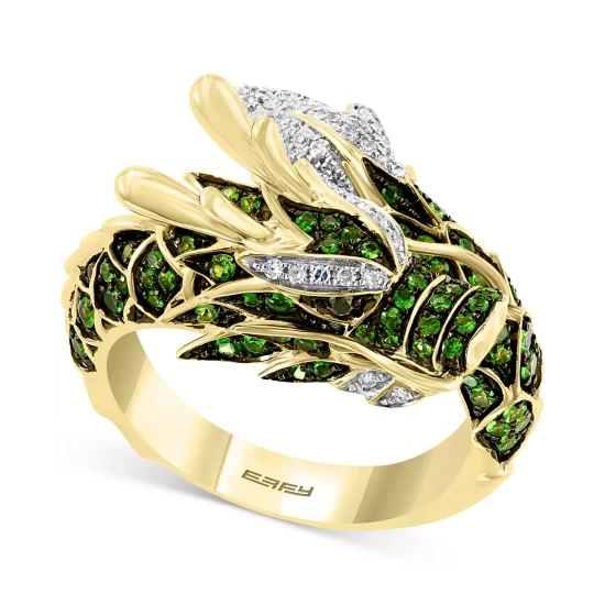 EFFY® delivers a double dose of prosperity with this stunning dragon ring. The tsavorite stone is said to bring wealth, and a dragon is a well-known symbol fortune. Add the eternal strength and beauty of diamonds and you have a statement piece that defies description.