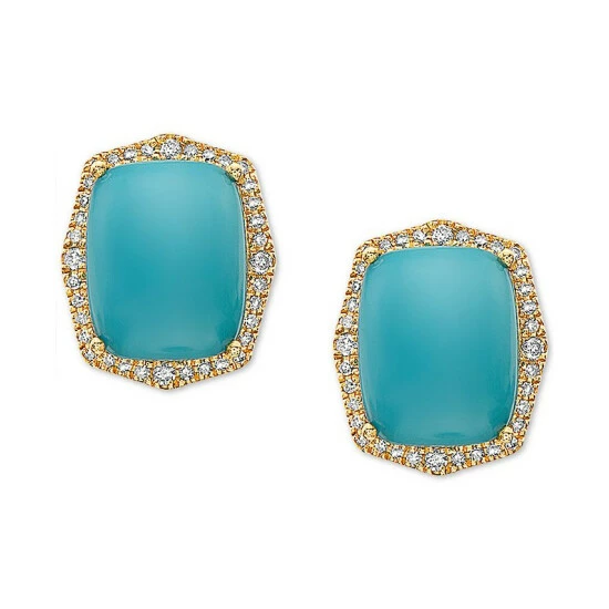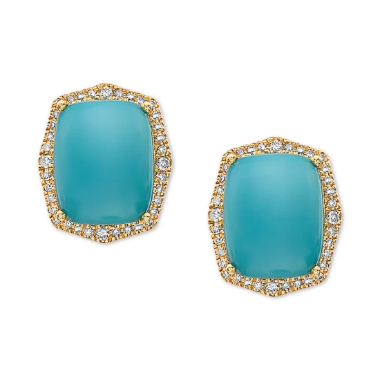 Brilliant blue turquoise stones are wrapped in diamond frames on these stunning stud earrings from EFFY®.