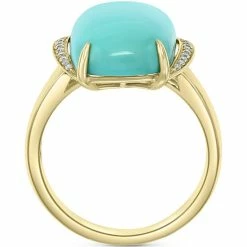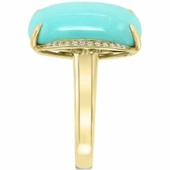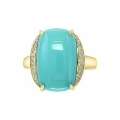 The brilliant blue hue of a large turquoise is enhanced by sparkling diamond shoulder stones in this dramatic statement ring from EFFY®.