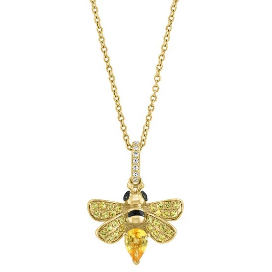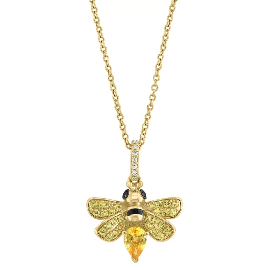 A sweet bee is loaded with honey-hued yellow sapphires on this adorable EFFY® pendant necklace with black and white diamond accents.