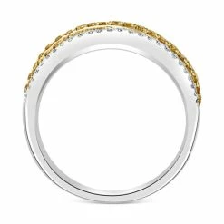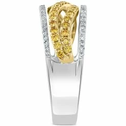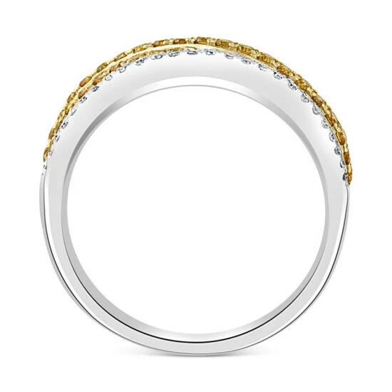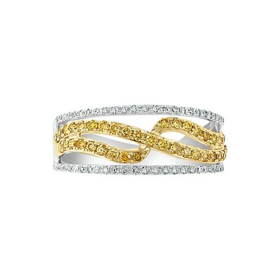 Swirls of yellow diamonds are outlined with white diamonds on this elegant two-tone EFFY® ring.