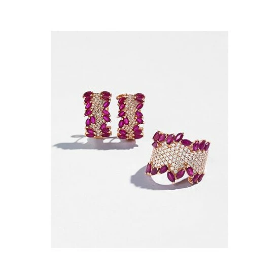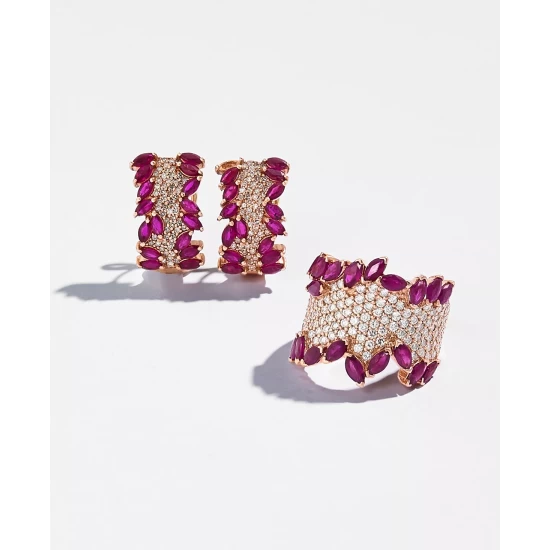 Get glamorous glitter with this gorgeous ring by Effy Collection. Featuring pear-cut ruby (3-1/4 ct. t.w.) & round-cut diamonds (1-3/8 ct. t.w.) set in 14k rose gold.