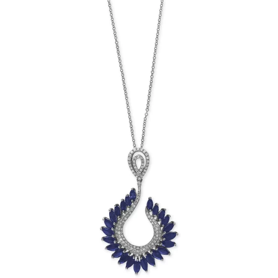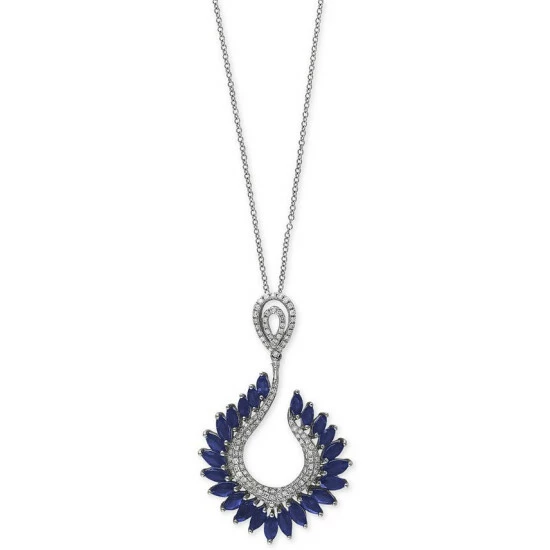 Exquisite marquise-shape sapphires (4-3/8 ct. t.w.) fan out in elegance in this round-shape diamond (1/2 ct. t.w.) accented pendant necklace from EFFY® in 14k white gold. Lobster clasp. Approximate length: 18″. Approximate drop: 1-3/4″.