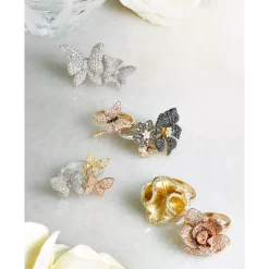 - Set in 14k white gold (emerald, sapphire) or 14k rose gold (pink sapphire, ruby)