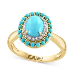 New 👍 EFFY Collection EFFY® Turquoise & Diamond (1/10 Ct. T.w.) Halo Ring In 14k Gold ❤️